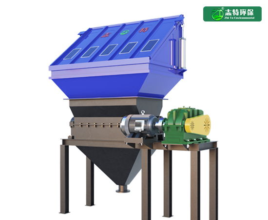 該動物尸體破碎機為單軸破碎機,該單軸破碎機主要由密封料倉、破碎腔、破碎刀軸、動力機構、機架、出料倉、觀察檢修口等部件組成,